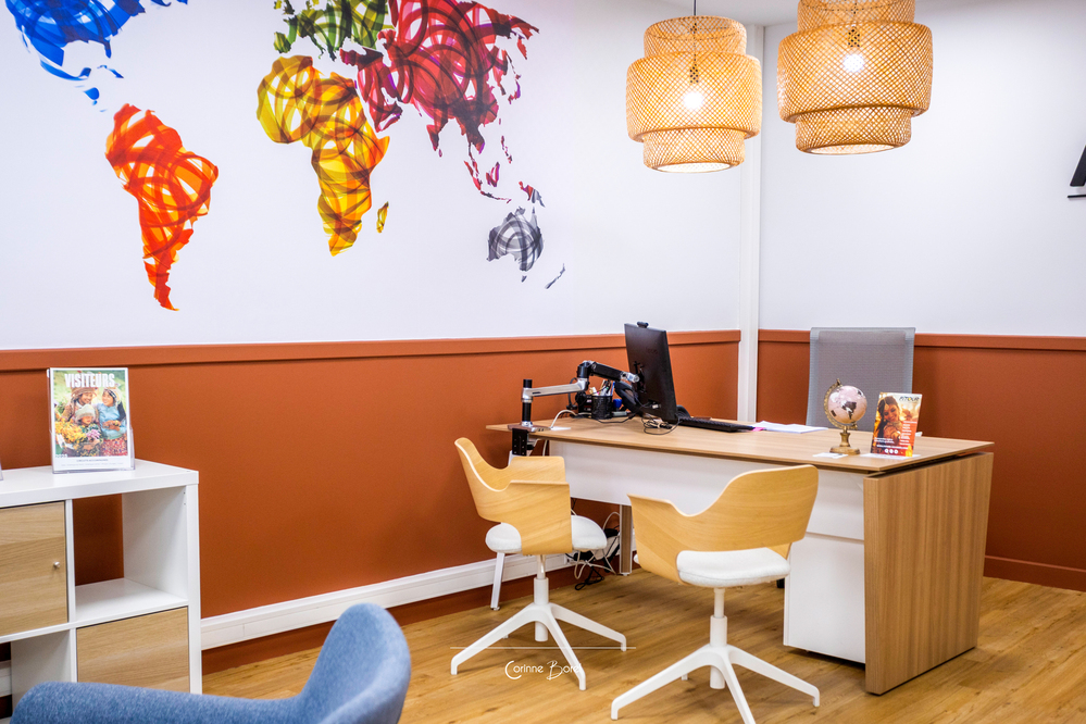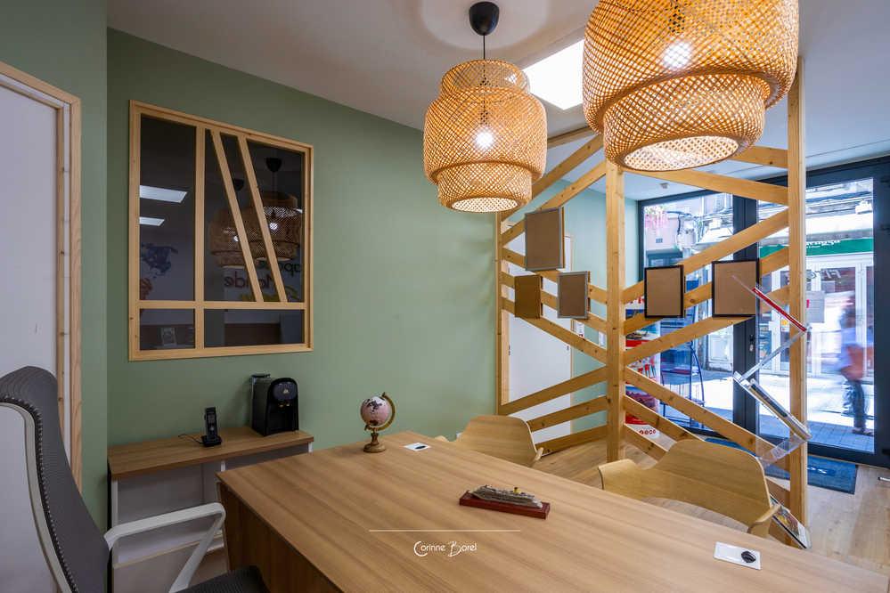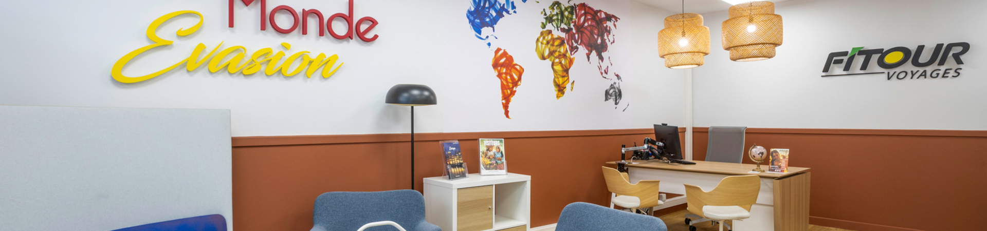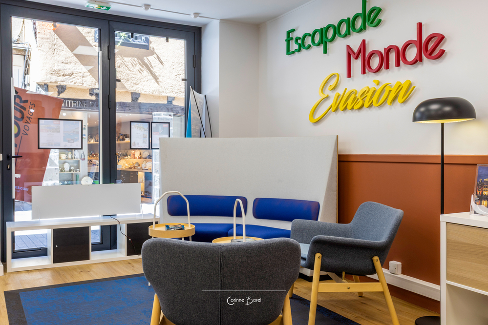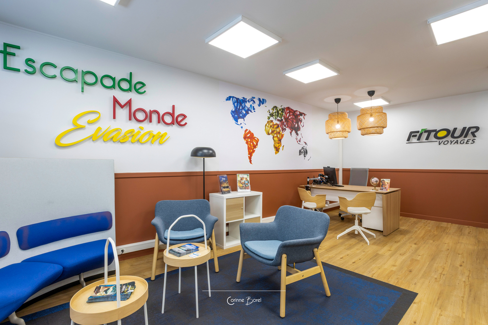 Aménagement d’une nouvelle agence de voyage à Aurillac Après avoir conçu leur première agence à Aurillac, nos clients fidèles nous ont renouvelé leur confiance pour l’aménagement de leur nouveau local. L’objectif était de réutiliser et transformer le mobilier existant afin de l’adapter à cet espace inédit et d’en tirer le meilleur parti. Ce nouvel aménagement a permis de donner une seconde vie à un ancien bar, transformé en une agence de voyage accueillante et inspirante. Pour marquer cette nouvelle étape, nous avons imaginé une thématique de couleurs inédite, moderne et dynamique, afin de se différencier et d’inviter les visiteurs à l’évasion dès leur entrée. Nous sommes heureux d’accompagner nos clients professionnels dans la durée et de contribuer à leur identité visuelle à travers des espaces uniques. Platerie/ Peinture : Sarl LE PEINTRE Photographe : Pascale Poujols |