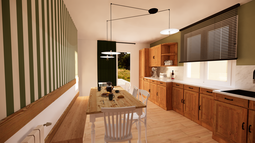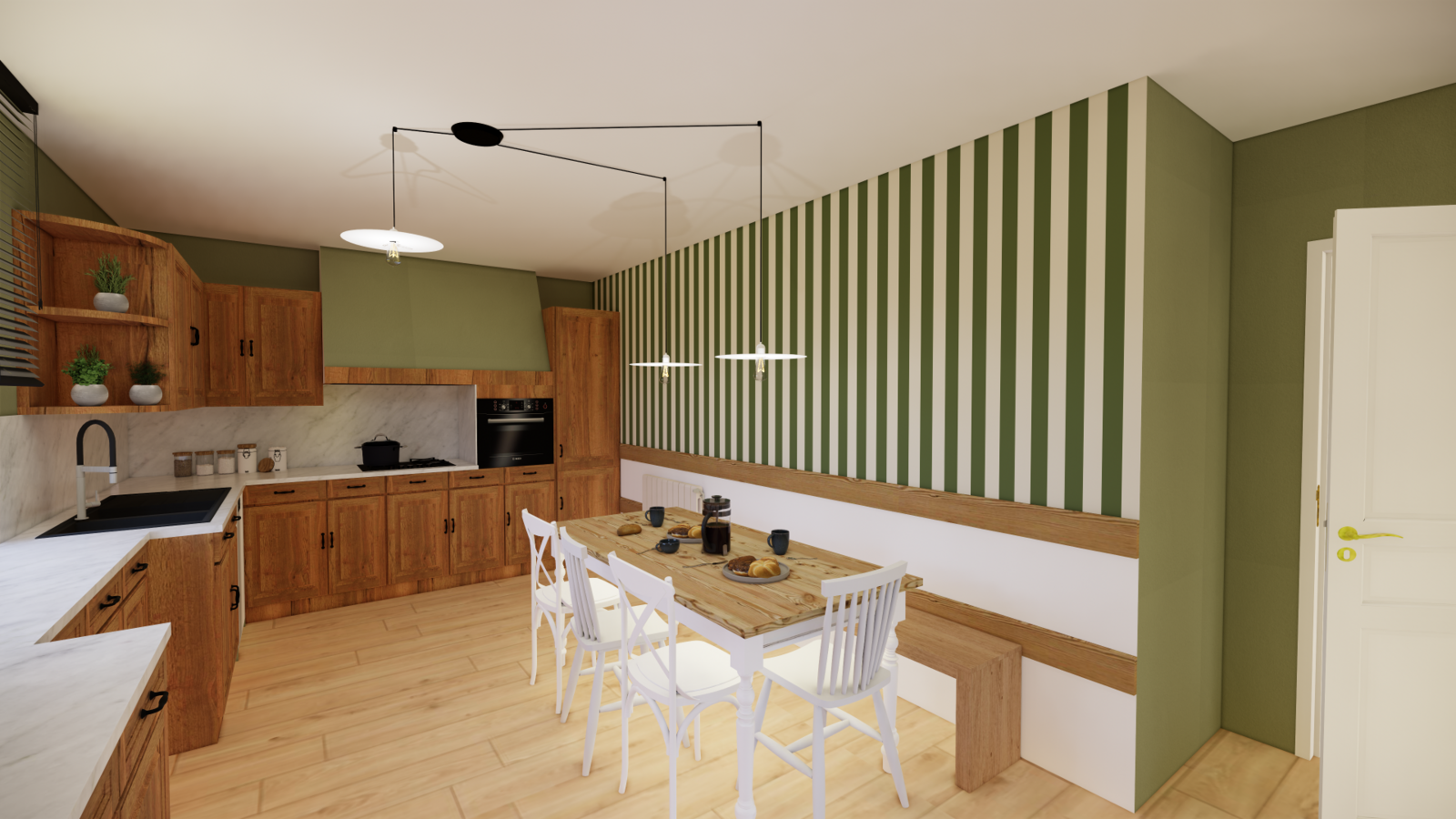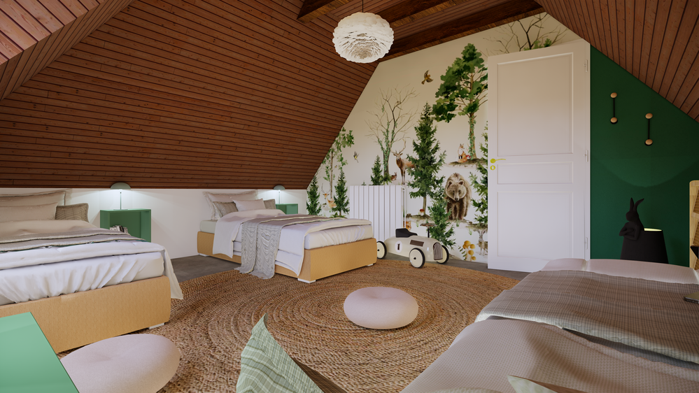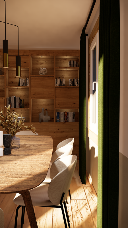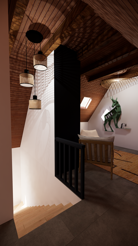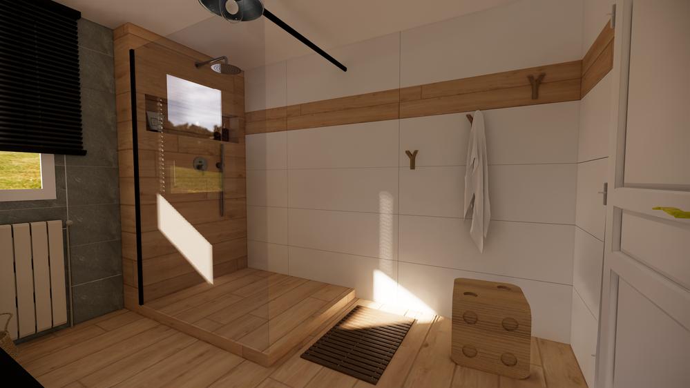 Le style « chalet de montagne » guide l’aménagement et la décoration, avec des agencements pensés pour optimiser l’espace, fluidifier la circulation et intégrer des rangements fonctionnels. Les revêtements ont été sélectionnés pour renforcer l’ambiance chaleureuse et l’identité du projet.