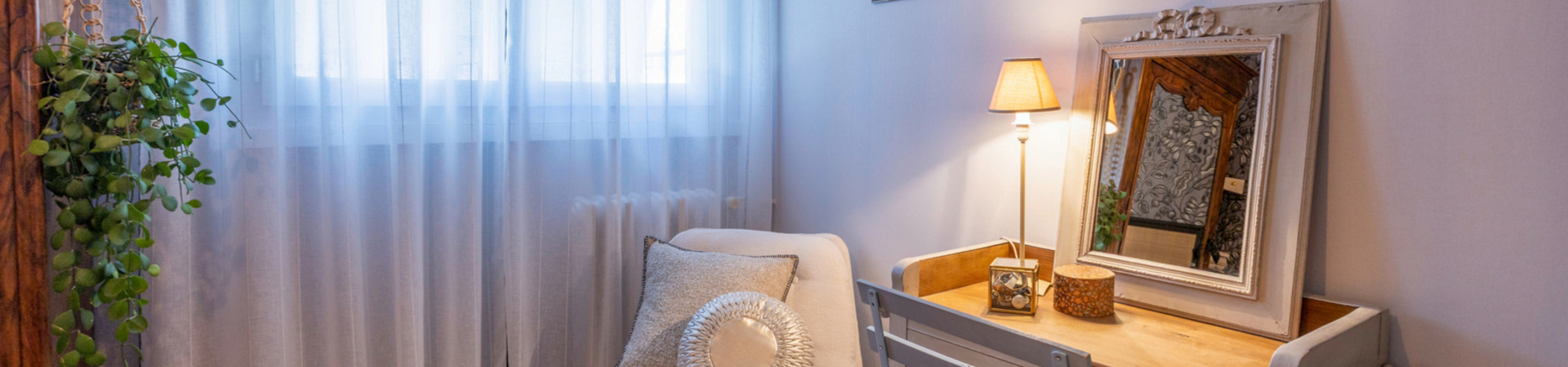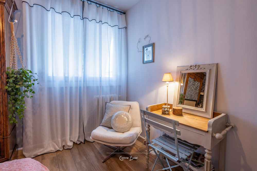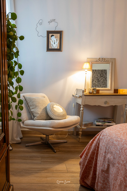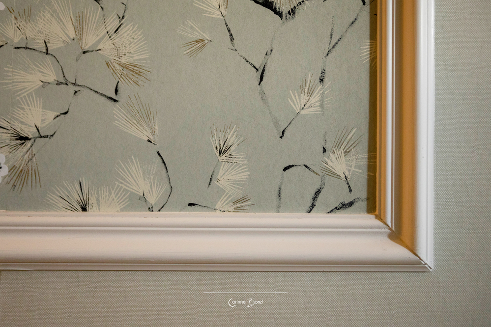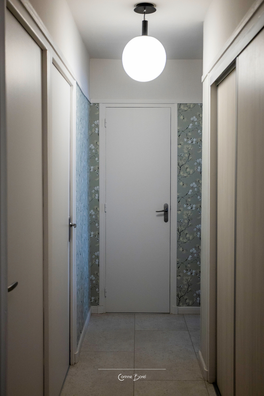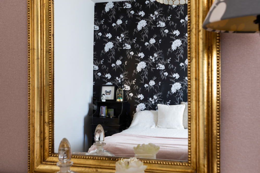 Rafraîchissement d’un appartement La cliente souhaitait créer un véritable fil conducteur dans son appartement, en apportant des touches de douceur tout en conservant les éléments existants. L’objectif : revoir les harmonies de l’entrée et des deux chambres pour sublimer les beaux objets déjà présents et leur offrir un écrin harmonieux. Le choix des papiers peints a permis de rythmer les espaces et d’instaurer une atmosphère apaisante. Les couleurs pastel – vert d’eau et rose pâle – apportent fraîcheur et délicatesse, tandis que les rideaux soulignés d’un liseré noir viennent parfaire les finitions avec élégance. Photographe : Pascale Poujols |